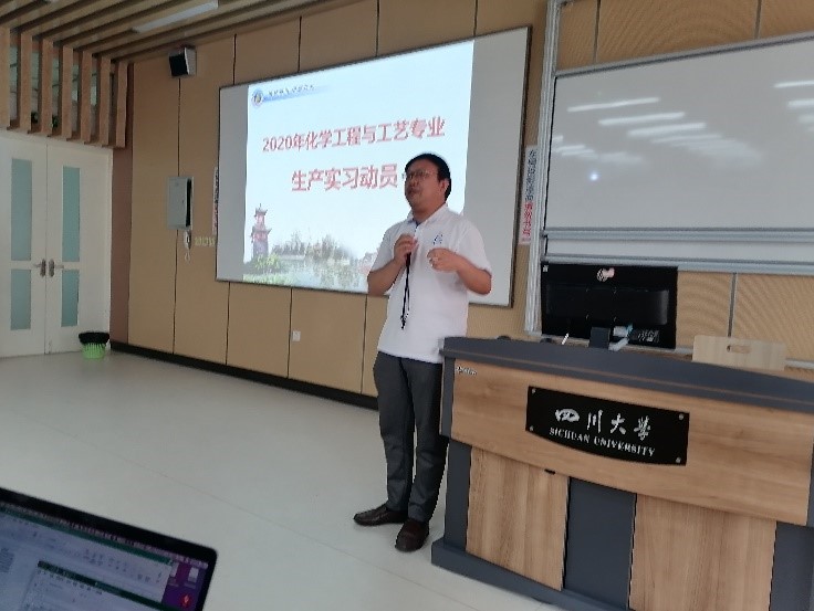 9月18日下午,化工系实训教研室在江安校区综合楼C203召开化工生产实习动员大会。化工系主任袁绍军教授、实习指导老师蒋绍志、吴振国、顾武安、敬方梨、陈建钧、何坚、刘博文等、2017级化工专业和冶金专业全体本科生参加了会议。会议由陈建钧主持。