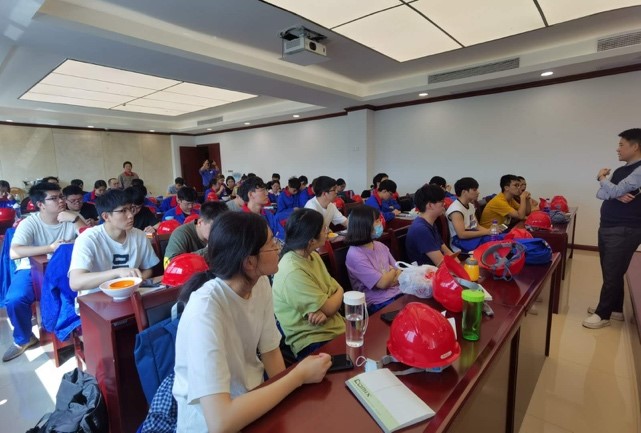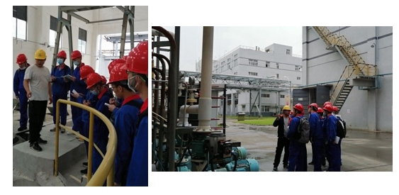 郭孝东副院长到达现场后,首先详细了解了同学们的生活和学习情况,对生产实习的认知和感受。随后,郭老师跟同学们强调了生产实习的重要性,希望同学们能珍惜实习机会,将课堂所学理论知识和现场设备、工艺等环节有机结合,多向有经验的工程师交流学习,提升自己发现问题、解决问题的工程实践能力。其次,郭老师提出化工行业是国民经济不可或缺的重要组成部分,鼓励大家继续深造,努力学好专业知识。最后郭老师提醒大家在实习现场一定要注意安全,一切行动听指挥,牢记学校和企业的安全培训,戴好安全帽,注意脚下。郭老师还同鼎盛锂业综合部田部长就化工专业本科生实习进行了深入交流,感谢公司为同学们提供宝贵的实习机会和细心指导,就每天的实习安排进行了充分讨论。