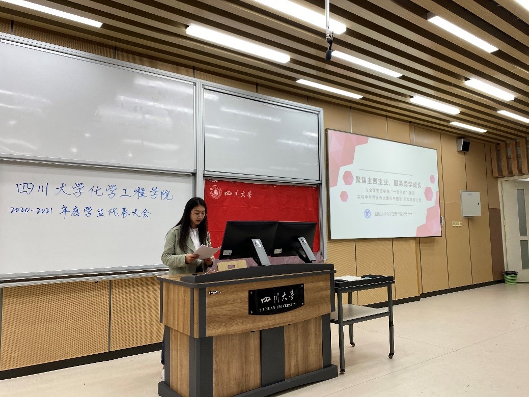 2020-2021年度学生代表大会在江安校区综合楼C104召开。学院党委书记庞国伟、党委副书记姜利寒、团委书记龙柯出席大会,学院学生代表参加大会。
