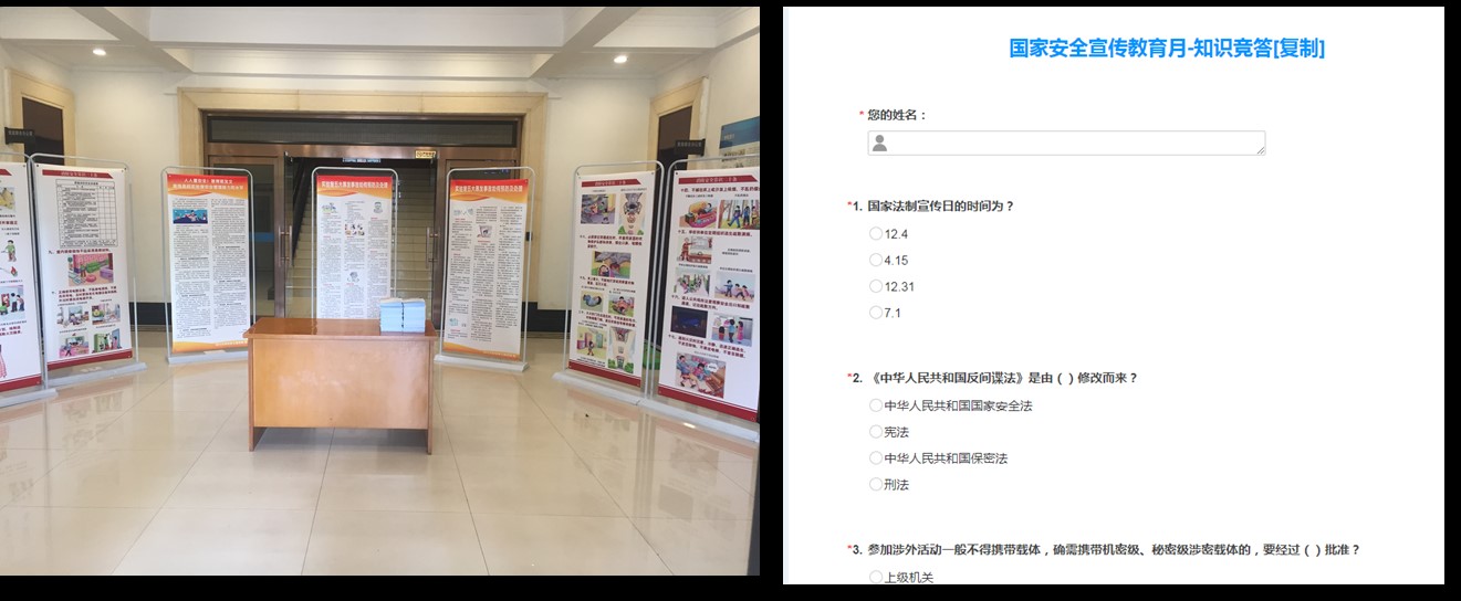 安全管理员胡毅老师和保密管理员李涛老师,分别围绕维护国家安全的重要性,组织了线上线下的宣传活动。有效地提高了师生的安全意识,加深了师生对国家安全的认识和理解。