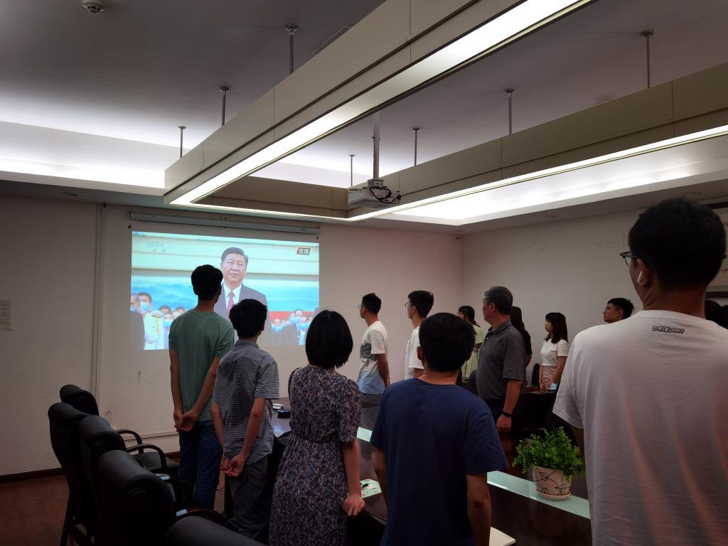 在望江校区化工楼235会议室设置会场,组织党员集体收听收看仪式盛况。29日上午10点,全体在家党政领导班子成员、支部书记、党员师生等集体收看了“七一勋章”颁授仪式现场直播。