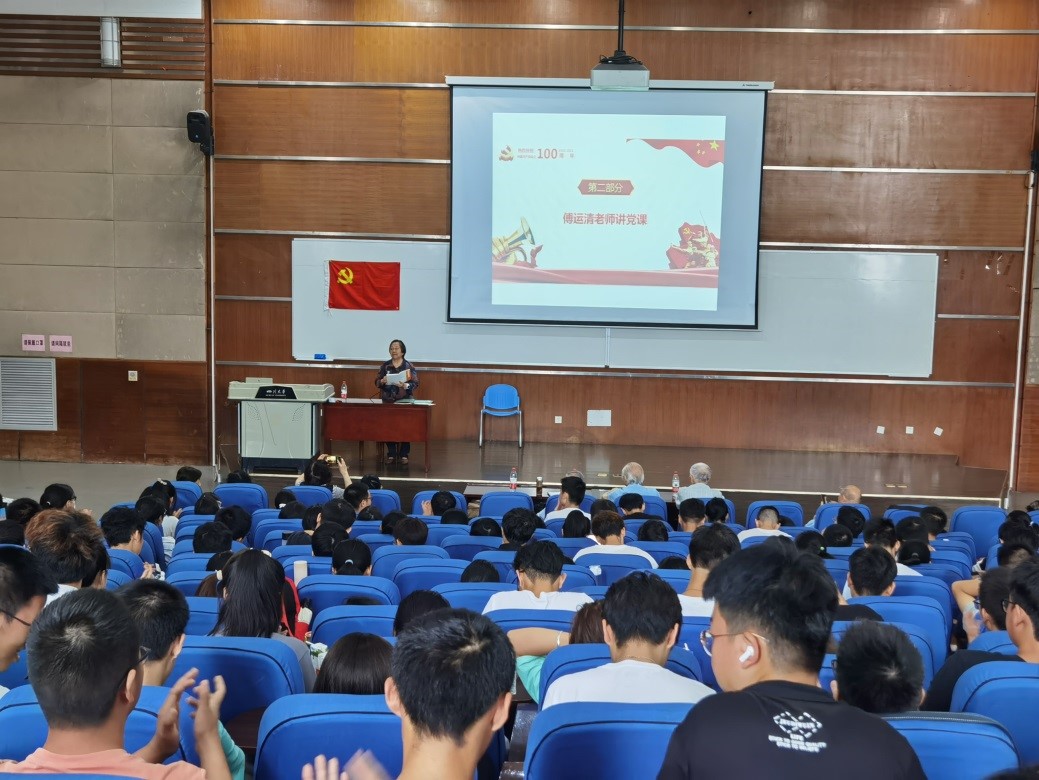 本次党史教育学习活动,首先开展的是关工委秦自明老师以“学党史 悟思想 谈心得”为主题的党课。在30分钟的党课中,不仅阐述了关于党史学习中“为何学,学什么,怎么学”的重要内容,还由浅入深、由表及里、条理清晰、层层递进,理论联系实际,结合百年党史深入总结了四点学习感悟。其中,秦自明老师也提到,在深化党史学习教育中继续学习贯彻习近平总书记“七一”重要讲话精神。在场的师生对于秦自明老师的博古通今以及授课内容新颖丰富表示赞不绝口并送上数次雷鸣般的掌声。