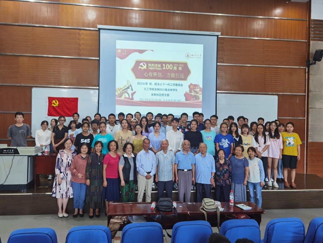 于2021年9月25日上午9点半,在江安校区综合楼C407教室,顺利开展以“心有所信,方能行远”为主题的党史学习教育活动。本次活动有包括2021级本科新生和本科社区党支部党员在内的近400名学生参加,主讲嘉宾邀请的是关工委秦自明老师和傅运清老师。此外,出席本次活动的嘉宾还有校、院关工委梁明征老师、曹养书老师、杨传云老师、李川娜老师、刘胜青老师、孔古娅老师、赵红卫老师、侯筑老师,学院杨谨瑗老师。本次活动由学院李珍珍老师主持。