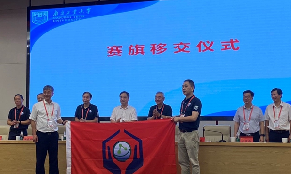 庞国伟书记代表学院参加了赛旗交接仪式,并表示学院一定会尽全力将第五届全国大学生化工实验大赛办得更好,期待2022年更多的高校参与到化工实验大赛,相约美丽的四川成都。