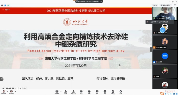 2021年7月29日,由教育部高等学校材料类专业教学指导委员会主办,华北理工大学承办的第四届全国大学生冶金科技竞赛决赛于线上成功举行。AV研究所