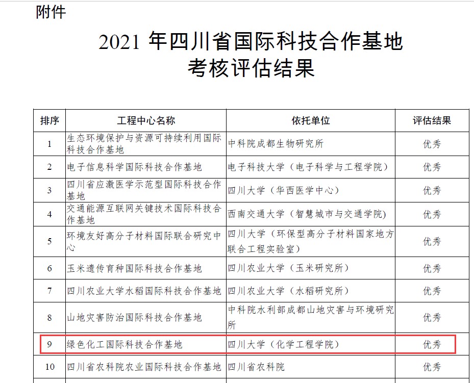 “绿色化工国际科技合作基地”评估结果为优秀。