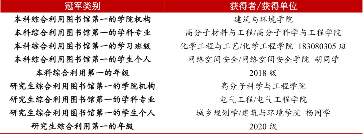 “明远学习榜”工科“本科入馆次数第一的学习班级”、“本科综合利用图书馆第一的学习班级”冠军榜。
