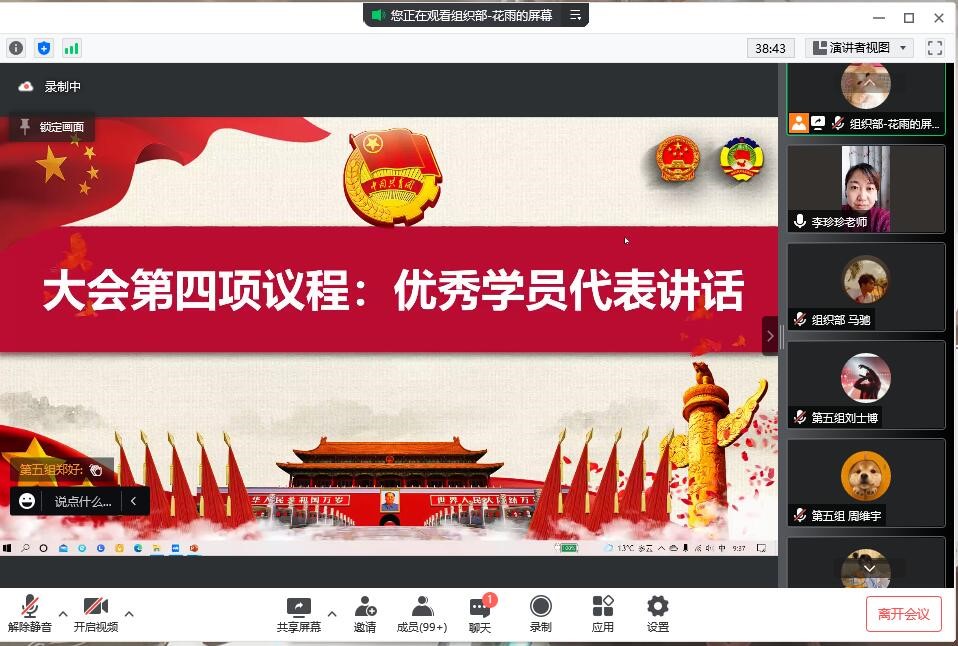 2021-2022学年团校,完成预定计划与课程任务顺利结课。本次团校结业典礼根据学校疫情防控要求进行安排部署,于2022年3月5日9:30腾讯会议线上举行。