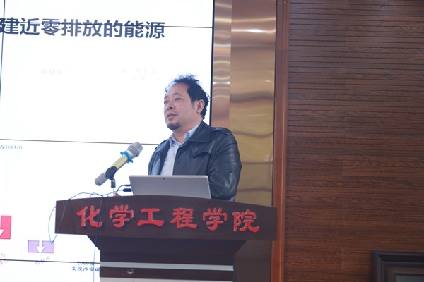 吉旭教授以“新能源背景下的互联化工发展思路”为题,从“双碳目标推动化学工业发展、绿氢是绿色能源替代和绿氢的创新与关键技术攻关”三个方面,提出绿氨是未来十年绿氢有效消纳的关键路径,这个发展方向大有可为的观点。他提出,学院要充分整合优势资源,将各学科、专业方向互联起来,推动化工研究主动参与能源和电网服务。最后,他用榔头比喻AI技术,希望我们的教授们发挥敢于拼搏的精神,积极主动参与大型工程示范,自己也愿意推动互联化工与院内科研方向的交叉融合,一起把氢能、绿色化工做得更好。