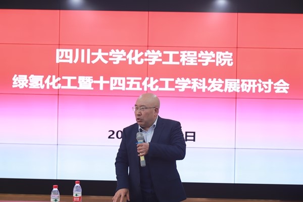 研讨会上,朱家骅教授结合前期推进的氢能产业产学研合作推进情况,结合国家碳中和战略布局,提出要贯彻新发展理念,抓住能源这个“牛鼻子”,打造清洁低碳、安全高效的现代能源体系。结合当前新工科和绿色化工的发展背景,围绕“绿色化工过程”主题,朱家骅教授倡导践行绿电绿氢推动绿色化工(Green power & Green hydrogen to Green chemical engineering,3G ChemE)发展的理念。随后,朱家骅教授结合最近几年的研究成果,分析了目前绿电、绿氢、绿氨的化工过程。朱教授提出,我们要通过能源零碳革命引领全社会加速脱碳,实现能源电力发展与碳脱钩、经济社会发展与碳排放脱钩(“双脱钩”),开辟一条速度快、成本低、效益高的川大化工碳中和与绿色化工之路。最后,朱家骅教授引用杨振宁先生在今年“感动中国”颁奖典礼上的谢辞“宁拙毋巧宁朴毋华”,提出了学院学风建设、文化建设、学科建设何去何从的思考。