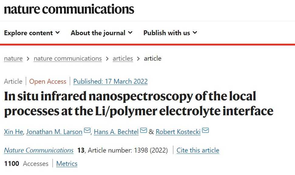 科研扫描系列报道|学院何欣特聘研究员在Nature Communications发表文章:近场红外技术揭示锂/电解质界面反应