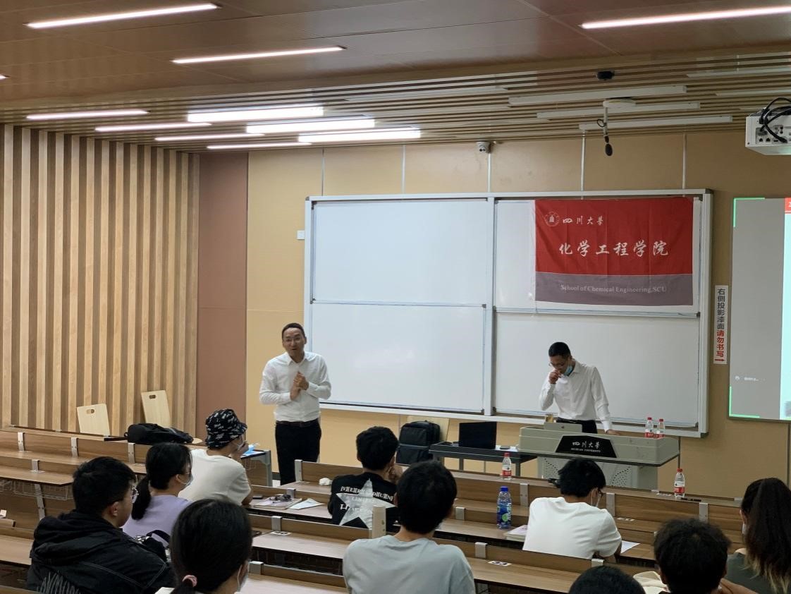 讲座伊始,赵院长首先着重剖析了第一部分——“川大化工人的‘四个面向’”。他提到,习近平总书记在主持召开科学家座谈会时提出,“广大科学家和科技工作者肩负起历史责任,坚持面向世界科技前沿、面向经济主战场、面向国家重大需求、面向人民生命健康,不断向科学技术广度和深度进军。”赵院长启示我们,要深刻理解与把握时代潮流和祖国需要,以真才实学服务人民,以创新创造贡献国家。此后,赵院长为我们讲解了川大化工的办学理念。张洪沅先生曾言,AV研究所