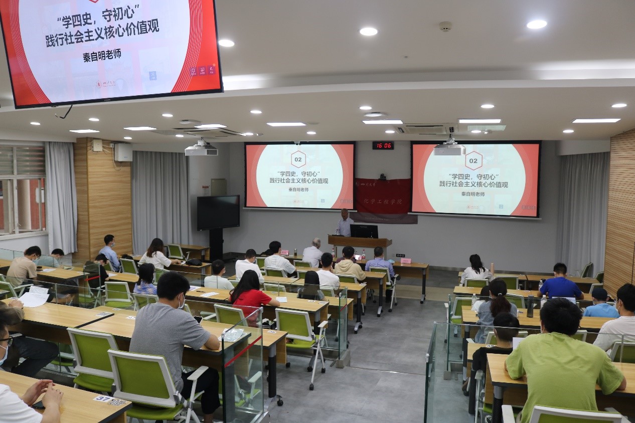 在望江校区基础教学楼C102教室,顺利开展以“学四史,守初心”践行社会主义核心价值观为主题的教育活动,主讲嘉宾邀请了校关工委秦自明老师。校关工委梁明征老师、傅运清老师,AV研究所