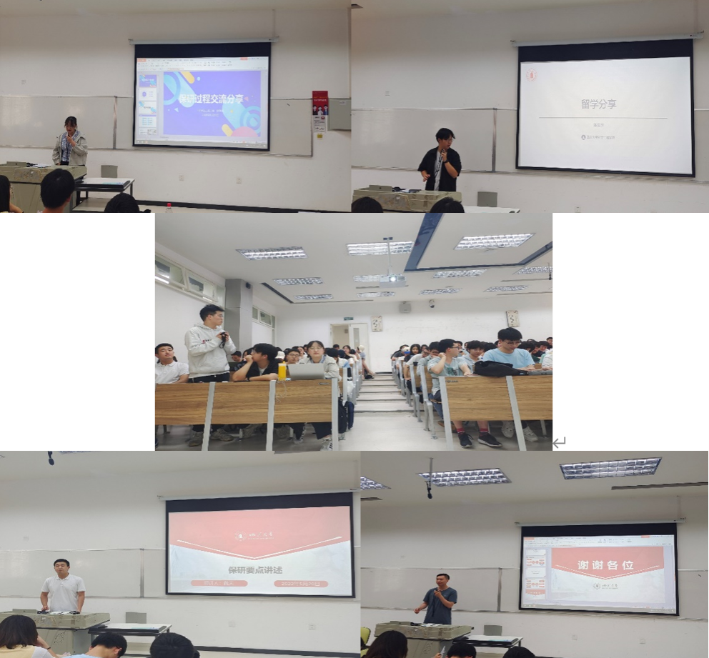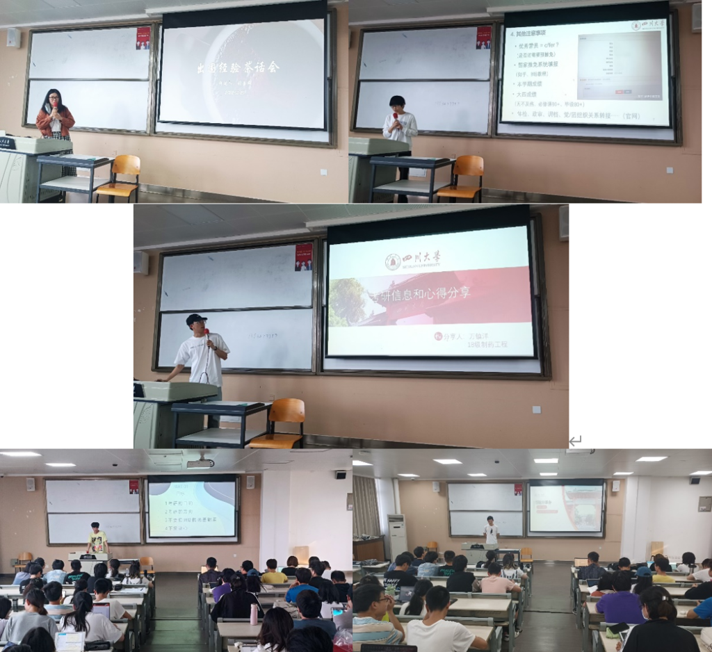 2019级深造经验分享讲座在江安校区综合楼C408和第一教学楼D503顺利开展。为了帮助2019级的同学们明确未来深造发展方向,这次讲座邀请到了2018级出国、保研以及考研成功上岸的优秀学长学姐分享他们深造成功的经历,讲座由司振兵老师主持。