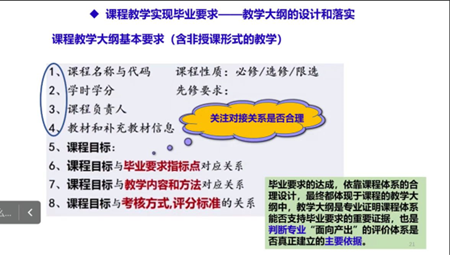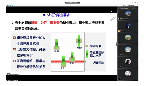 接下来,余亚兰副教授详细地介绍了专业人才培养目标的定位、毕业要求的撰写逻辑,重点解析培养目标、毕业要求和课程体系之间的逻辑关系,合理的课程体系设计应以毕业要求为依据,确定课程体系结构,设计课程内容、教学方法和考核方式,形成以毕业要求为准绳的综合评价培养质量。最后,参会老师对人才培养方案修订过程中存在的问题进行了深入讨论,为进一步修订人才培养方案明晰了思路。