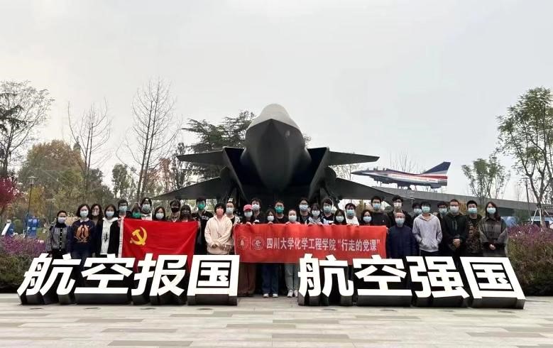 本科雏鹰党支部、本科社区党支部、化学工程与工艺103班团支部联合开展了主题为“党建团建促交流,深学践悟明方向”的主题活动。本次主题活动分为两个部分,党团支部参观成飞航空主题教育基地和姜利寒副书记讲授一堂“行走的党课”。参与本次活动的有学院党委副书记姜利寒、制药工程103班班主任李子成老师、本科社区党支部书记李珍珍老师、本科雏鹰党支部书记雷金凤老师、本科雏鹰党支部李忆雯和袁玲老师、本科社区党支部付率老师以及各个党团支部的学生党员和团员。