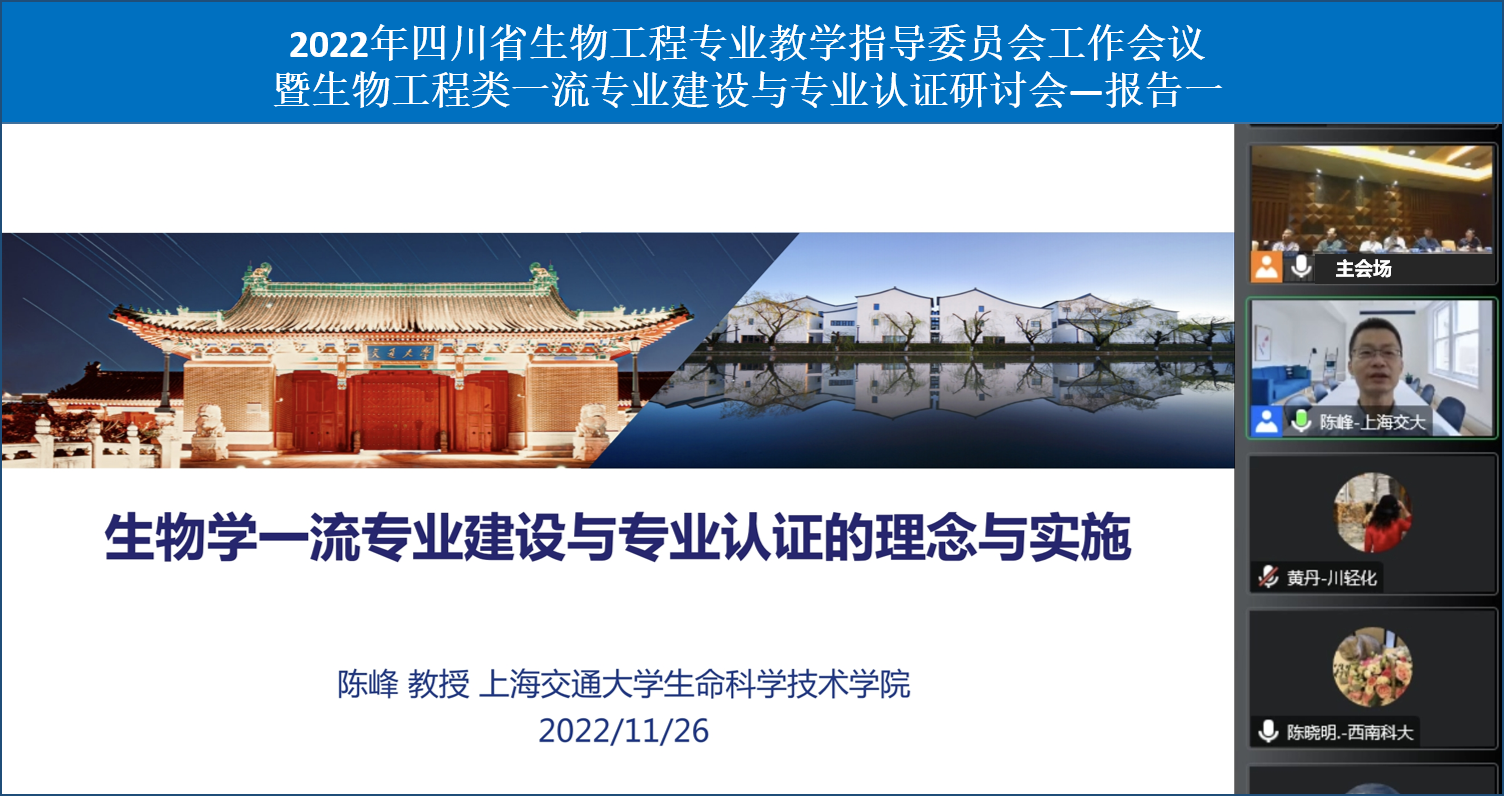及生命科学学院承办的2022年四川省生物工程专业教学指导委员会工作会议暨生物工程类一流专业建设与专业认证研讨会在成都市隆重举行,本次会议以线上线下结合方式同步进行。