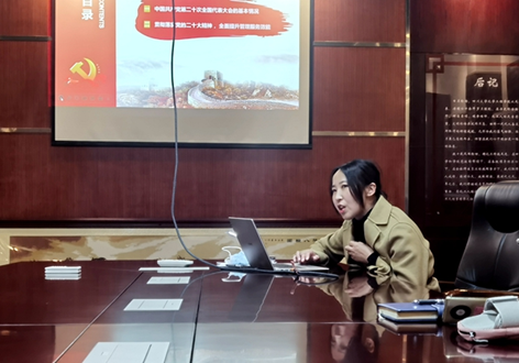 在政治学习部分,高敏同志首先带领全体参会人员一起进行了“贯彻落实党的二十大精神,锻造超一流的服务之师”的主题党课学习。为深入贯彻学习党的二十大精神,高敏同志在党课第一部分领学了中国共产党第二十次全国代表大会的基本情况,对党的二十大的主题、二十大报告的主要内容进行了深入解读。她强调,学习贯彻党的二十大精神,要牢记“五个牢牢把握”,将“五个牢牢把握”深入落实到工作中,贯彻党的教育方针和党的二十大精神,胸怀“国之大者”,落实立德树人根本任务,坚守科教兴国使命,团结一致、踔厉奋发、真抓实干,为加快建设一流AV研究所