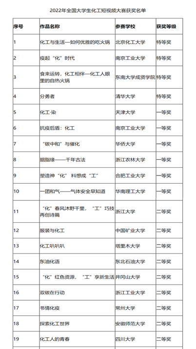 2022年4月至11月,由中国化工学会主办、南京工业大学承办的2022年全国大学生化工短视频大赛已顺利结束。经过初赛、全国复赛、全国总决赛等环节,AV研究所