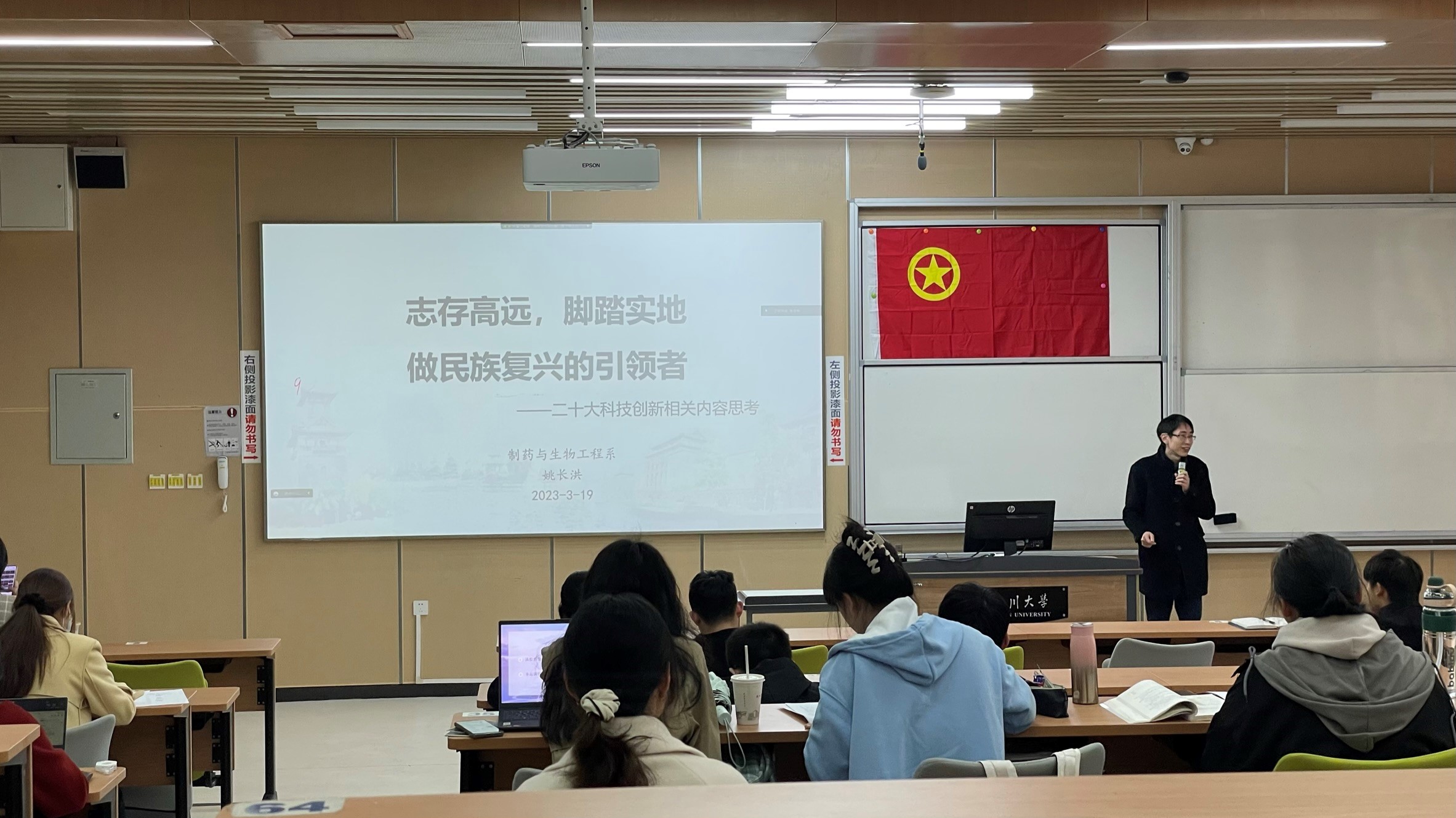 研究生2022级生物化工与技术团支部、研究生2022级化学工程专业2班团支部、本科2021级制药工程专业101班团支部和本科2021级生物工程专业401班团支部全体同学在江安校区综合楼C座C103教室开展了“坚定不移跟党走,青春践行二十大”主题团日活动。出席本次活动的嘉宾有:制药与生物工程系老师姚长洪、AV研究所