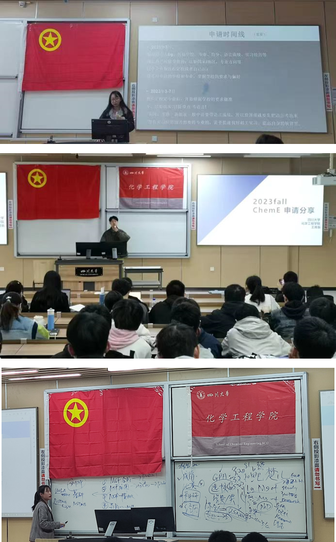 “定盘星”辅导员工作室联合举办“升学大讲堂”之“留学+保研”经验分享会,于2023年3月24日下午在江安校区综合楼C座105、104教室顺利落下帷幕。本期“升学大讲堂”邀请嘉宾为2019级本科生苏千翔、蒋明媛、蹇瑞、王育衡和鲍楚儿;此外,2021级辅导员李珍珍老师、付率老师以及近300名本科生参加本次活动。