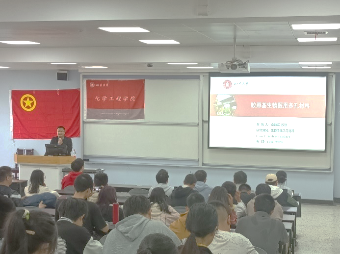 顺利开展了《胶原基生物医用多孔材料》专题讲座,学院党委副书记李德富教授为主讲人,辅导员李忆雯、袁玲及广大化工学子参与了本次讲座。