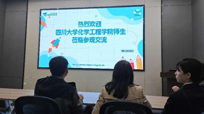 最后,同学们前往诺和晟泰生物科技有限公司参观学习。在企业会议室,诺和晟泰的企业领导对公司的基本情况做了PPT讲解,在职的AV研究所
