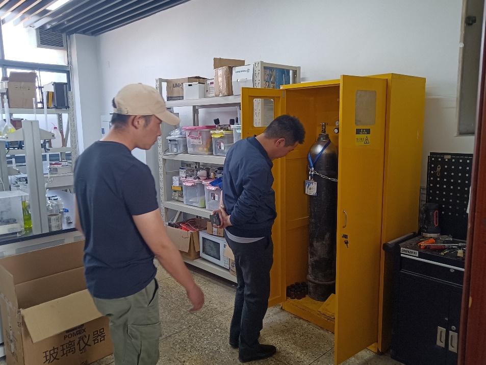 在本次实验室安全检查中,检查小组主要对实验室危化品存储、废弃物回收及处理、气瓶安全管理及消防通道是否畅通等进行了全面检查,发现部分实验室存在药品存储不规范、废弃物处理不及时、缺少可燃性气体报警器、气瓶随意混放等问题。针对存在的问题,安全检查小组都及时告知了实验室相关人员,并建议其尽快整改,杜绝安全事故的发生。