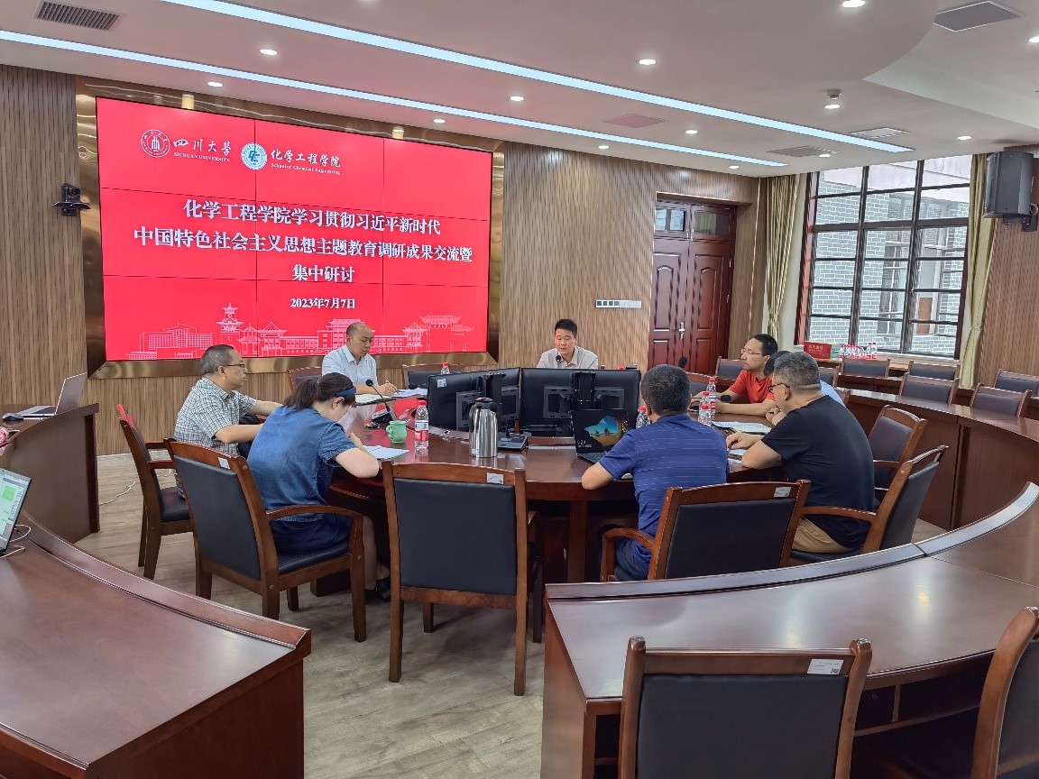 学习贯彻习近平新时代中国特色社会主义思想主题教育调研成果交流暨集中研讨在望江校区化工楼312会议室举行,会议研讨主题为“开展学习贯彻习近平新时代中国特色社会主义思想主题教育,以高质量党建引领事业高质量发展”。会议由学院党委书记李天友主持,学院全体领导班子成员、专职组织员、工会主席、两委委员、院长助理,系主任,教工支部书记等参加。