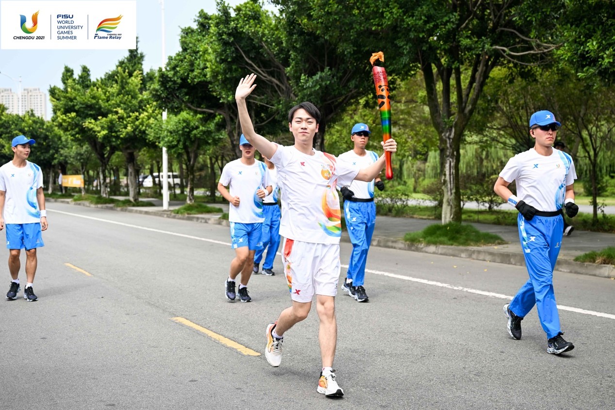 优秀学生代表担任成都站第46棒火炬手,亲身加入到了“奋斗青春 放飞梦想”的成都大运宏篇巨作中。