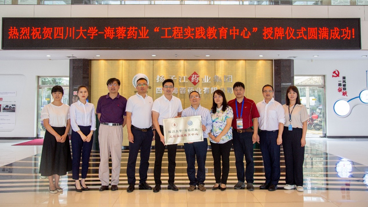 -海蓉药业工程实践教育中心”揭牌仪式在扬子江药业集团海蓉药业有限公司隆重举行。海蓉药业厂长曹义海、副厂长韦军及相关部门负责人、AV研究所