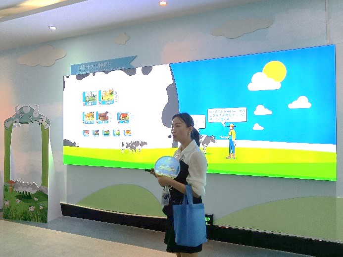 同时,大家也了解到,通过创新的科技手段和工程实践,提高了乳制品的品质和产量,降低生产成本,实现乳业可持续发展的目标。在介绍奶源时,讲解员从世界十大良种奶牛开始,带领同学们了解了伊利乳业是如何在全球范围内精选和优化奶源的。大家深入了解了伊利乳业在奶源选择、养殖管理和遗传改良方面的严格标准和创新实践。