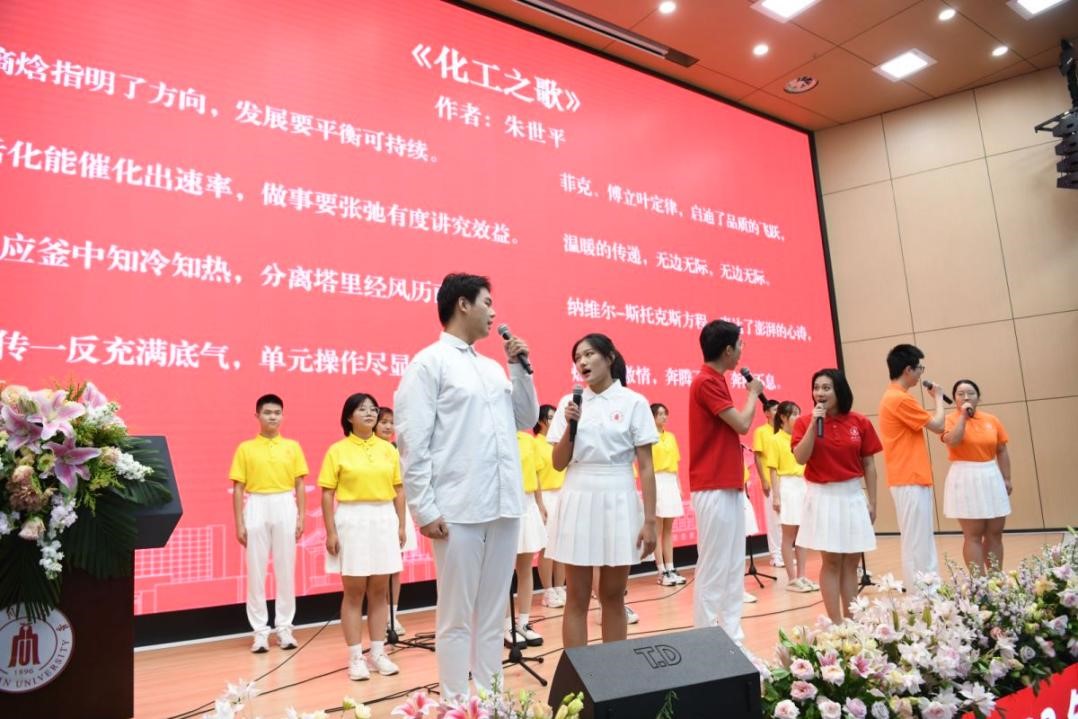的2023级本科新生代表合唱了朱世平教授作词、川大谱曲的《化工之歌》,用新时代化工学子婉转而悠扬的歌声唱出了化工青年的时代强音。