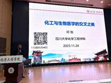 在“生物医药化工”环节,邓老师从自己的研发经历出发讲解化工与医药的交叉之美,介绍了团队研发出来的具有很高临床适用价值和发展前景的医用材料,让同学们了解到生物医药化工的魅力,加深了同学们对专业的认识。