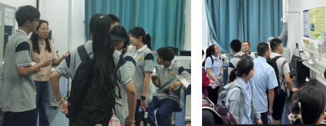 随后,老师们带领同学们参观了卓工中心大型仪器测试共享平台的仪器分析实验室,为大家介绍了光谱、色谱、热分析等仪器设备,并结合高中化学知识及日常生活,讲解了现代仪器分析技术在药品、食品成分含量分析及杂质检测中的应用。激发了同学们的好奇心,大家踊跃提问,老师们耐心地解答了同学们的疑问,在轻松愉悦的氛围中结束了此次参观交流活动。