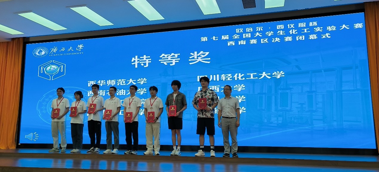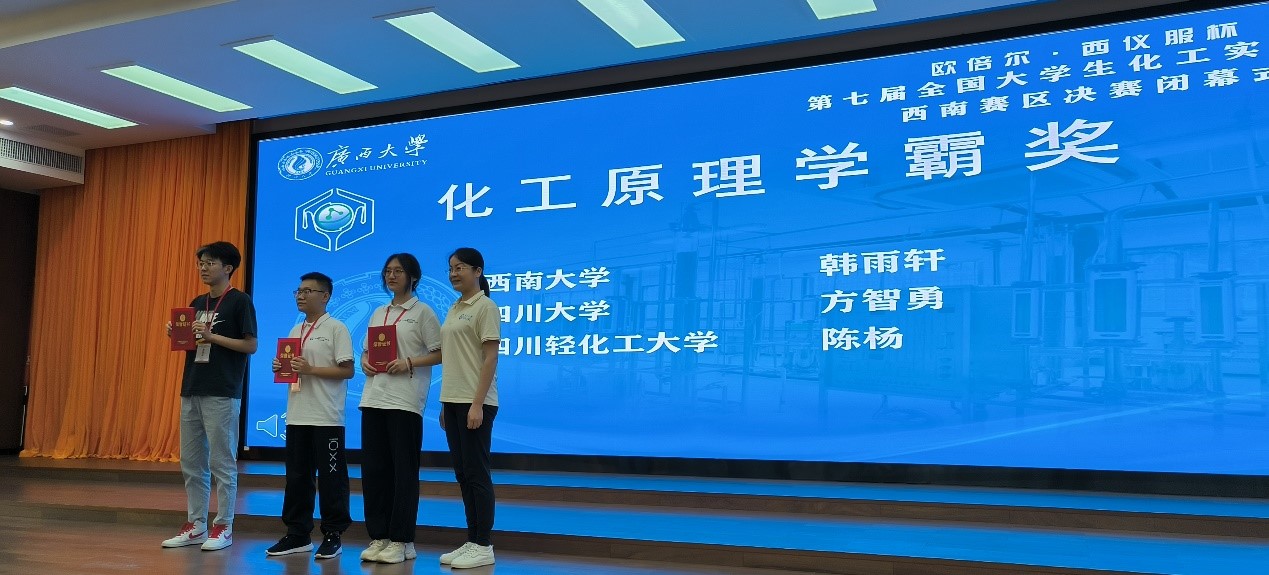 方智勇、柯常和方明智三位同学组建的参赛队于2024年7月18日-7月21日赴广西大学与来自西南赛区的共48支队伍一起参加了第七届全国大学生化工实验大赛西南赛区决赛。