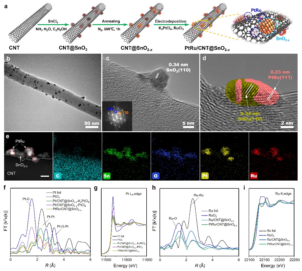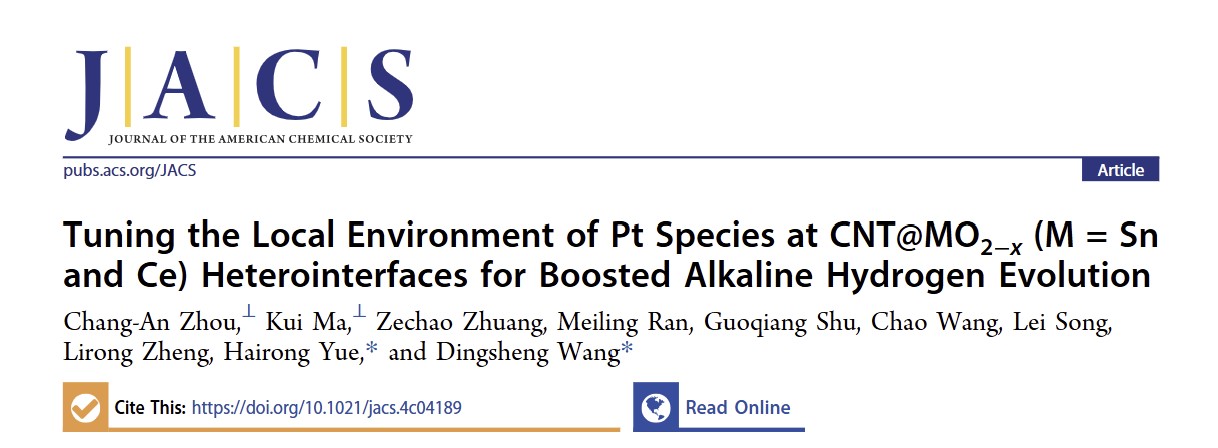 岳海荣教授团队与清华大学王定胜教授团队合作提出了一种高效复合结构(PtRu/CNT@MO2-x)碱性HER催化剂的设计策略。通过氧化物载体优化、Pt物种调控和修饰,改善催化剂导电性和调控异质界面局域环境,平衡了活性位点上H吸脱附、H2O吸附和解离行为,实现了碱性介质中的Volmer反应和H*脱附动力学同步加速,从而增强了Pt基催化剂的碱性HER性能。相关工作以“Tuning the Local Environment of Pt Species at CNT@MO2-x(M = Sn and Ce) Heterointerfaces for Boosted Alkaline Hydrogen Evolution”发表在国际顶级期刊《Journal of the American Chemical Society》。AV研究所