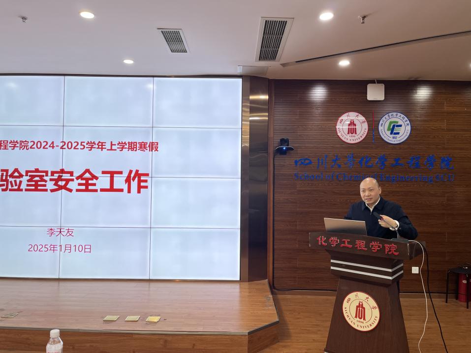在望江校区化工楼313会议室组织召开2024年度工作总结会暨假期实验室安全工作布置与培训会。学院全体党政班子成员、专职组织员、工会主席,全体教职员工参加会议。会议由学院党委副书记兼纪委书记李德富主持。