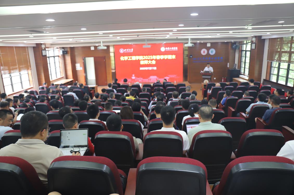 在望江校区化工楼313会议室组织召开2025年春季学期末教师大会,总结半年工作,开展师德师风警示教育,并进行暑期安全工作布置。学院领导班子成员、专职组织员、工会主席,全体教职工等参加会议。会议由学院党委副书记兼纪委书记李德富主持。