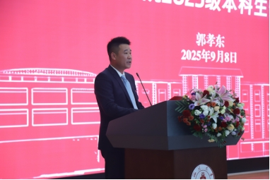 郭孝东首先代表学院欢迎2025级新同学,对大家成为新化工人表示祝贺,并以《以青春之我矢志奋斗 在新时代化工强国建设中书写精彩》为题,寄语新生将个人理想融入国家需求,在教育强国的征程中贡献青春化工力量!
