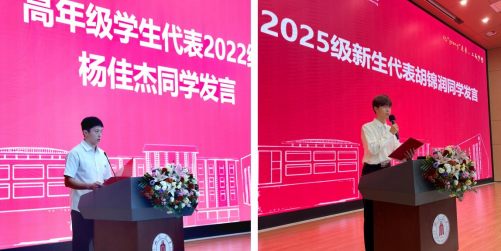 在校生代表2022级杨佳杰同学、新生代表2025级胡锦润同学发言