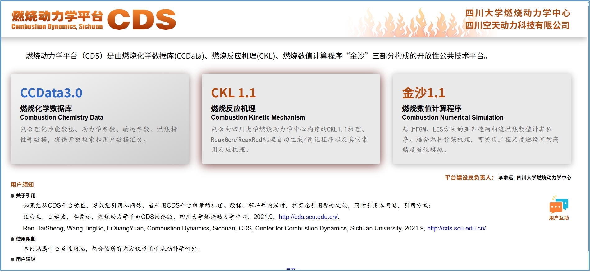 燃烧动力学中心李象远教授牵头开发的发动机燃烧开放性公共平台——燃烧动力学平台CDS(//cds.avyjsvip.com/)实现升级,其核心组成部分燃烧化学数据库CCData发布3.0版本,本次升级实现了数据类型和检索功能的拓展及数据库大规模扩容。