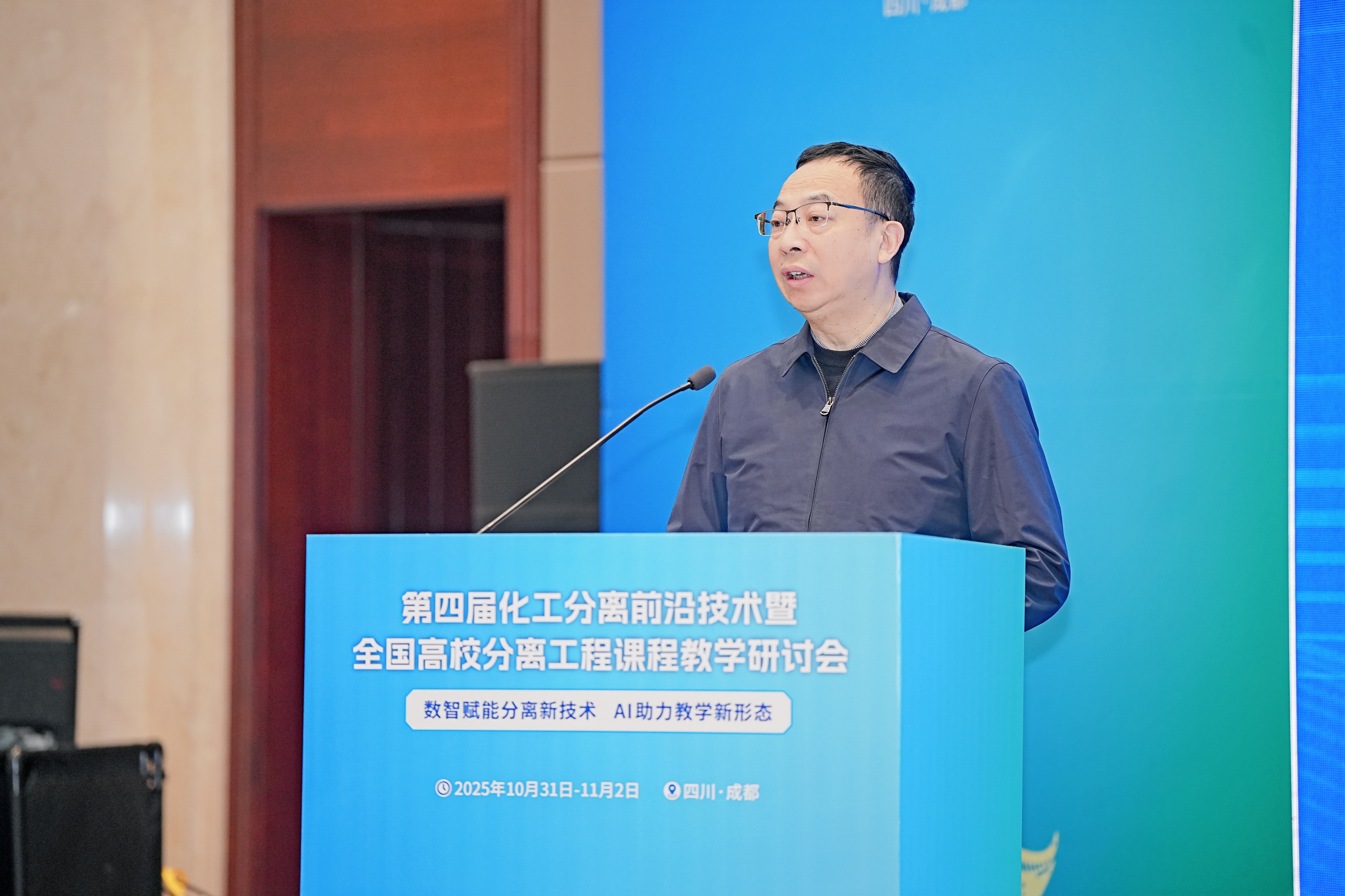 致辞。他指出,化工分离前沿技术是学校重点布局与持续支持的战略科研方向。本次会议构建的高水平学术交流平台,将有效整合学界智力资源,充分发挥科研人才与学科交叉的协同效应,深入探讨分离工程领域的前沿进展、技术转化路径与高层次人才培育机制,为化工专业本科教育质量提升注入新动力。