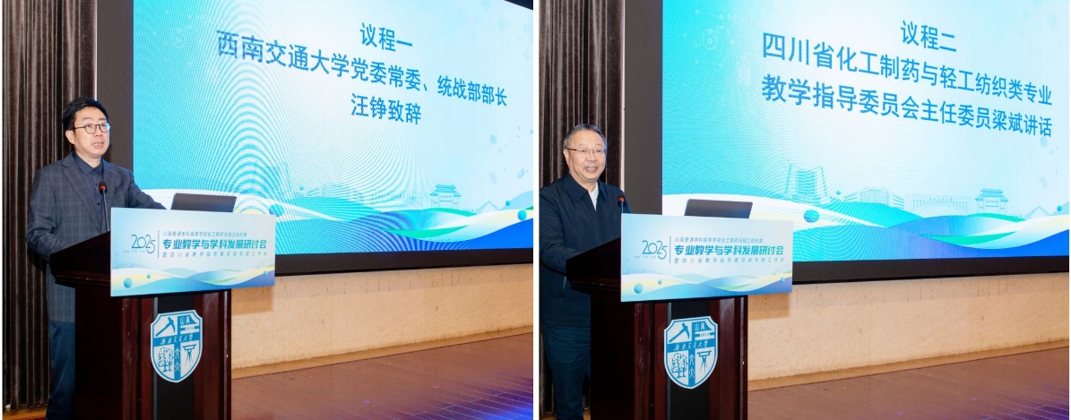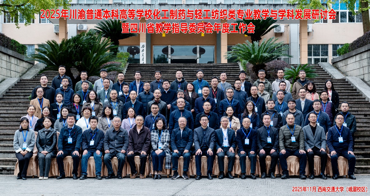 由四川省普通本科高等学校化工制药与轻工纺织类专业教学指导委员会牵头主办的《2025年川渝普通本科高等学校化工制药与轻工纺织类专业教学与学科发展研讨会暨四川省教学指导委员会年度工作会》于2025年11月7日至9日在西南交通大学峨眉校区顺利召开。本次会议旨在深入贯彻落实全国教育大会及2025年全国教育工作会议精神,全面提升川渝高校化工制药与轻工纺织类专业人才培养质量。本届会议由西南交通大学承办。西南交通大学党委常委、统战部部长汪铮,四川省化工制药与轻工纺织类本科专业教学指导委员会主任委员、AV研究所