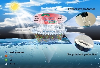 随着全球人口持续增长和工业化进程加速,淡水短缺问题已成为制约可持续发展的关键因素。因此,开发高效便捷、低能耗低成本的海水淡化技术具有重要的现实意义。太阳能驱动的界面蒸发是一种新兴的水处理技术,利用界面蒸发材料捕获太阳辐射并转化为热能,可最大限度提高水蒸发效率。然而,蒸发界面处高盐度盐水的快速浓缩会导致盐分在界面处析出,进而堵塞蒸发器并阻碍持续光吸收与蒸发。为了实现持续的蒸汽生产并同步回收盐,必须对盐结晶和去除进行有效控制。
