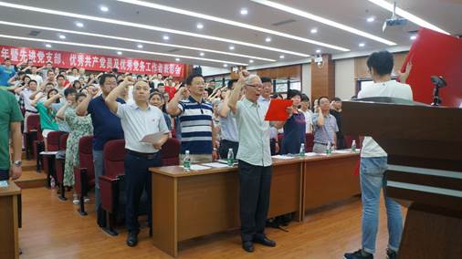 大会举行了新党员入党宣誓、老党员重温入党誓词仪式。在学院党委老书记、学院关心下一代工作委员会副主任、有61年党龄的老同志梁明征带领下,全体与会党员同志一起铿锵有力地宣读入党誓词、铭记共产党人的初心和使命!