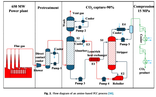 Fig. Flow diagram of an amine-based PCC process