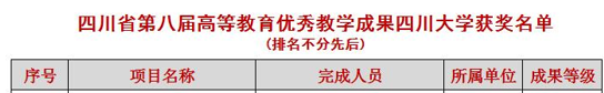近日,四川省人民政府公布了四川省第八届高等教育教学成果奖,AV研究所