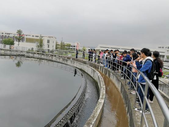 当日下午1时许,同学们到达九厂。在控制中心,总体了解了处理污水的大致过程。得知该厂利用A2/O(厌氧-缺氧-好氧)生物处理工艺实现污水的净化处理,日处理城市生活污水量达100万吨。而后,同学们在九厂相关高级技术工程师的带领下依次参观了处理污水过程中的入水口、物理吸附室、沉降室、除臭室、生化室、出水口等。其中着重参观了沉降室,同学们对大规模沉降淤泥的方法,有了初步的系统了解;工作人员详细介绍了生化室的具体情况,生化室主要对污水进行哪些方面的处理?微生物是如何在其中发挥巨大作用的?参观过程中,同学们还积极与工厂相关工作人员交流,具体了解到处理后的水去向,污水处理系统的清洁情况,九厂的污水处理能力效率及收益等问题。可谓收获颇丰。