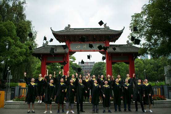拍班级毕业照活动中,大家积极参与,一起坐校车前往望江校区,一张张照片定格了四年相处的美好记忆。